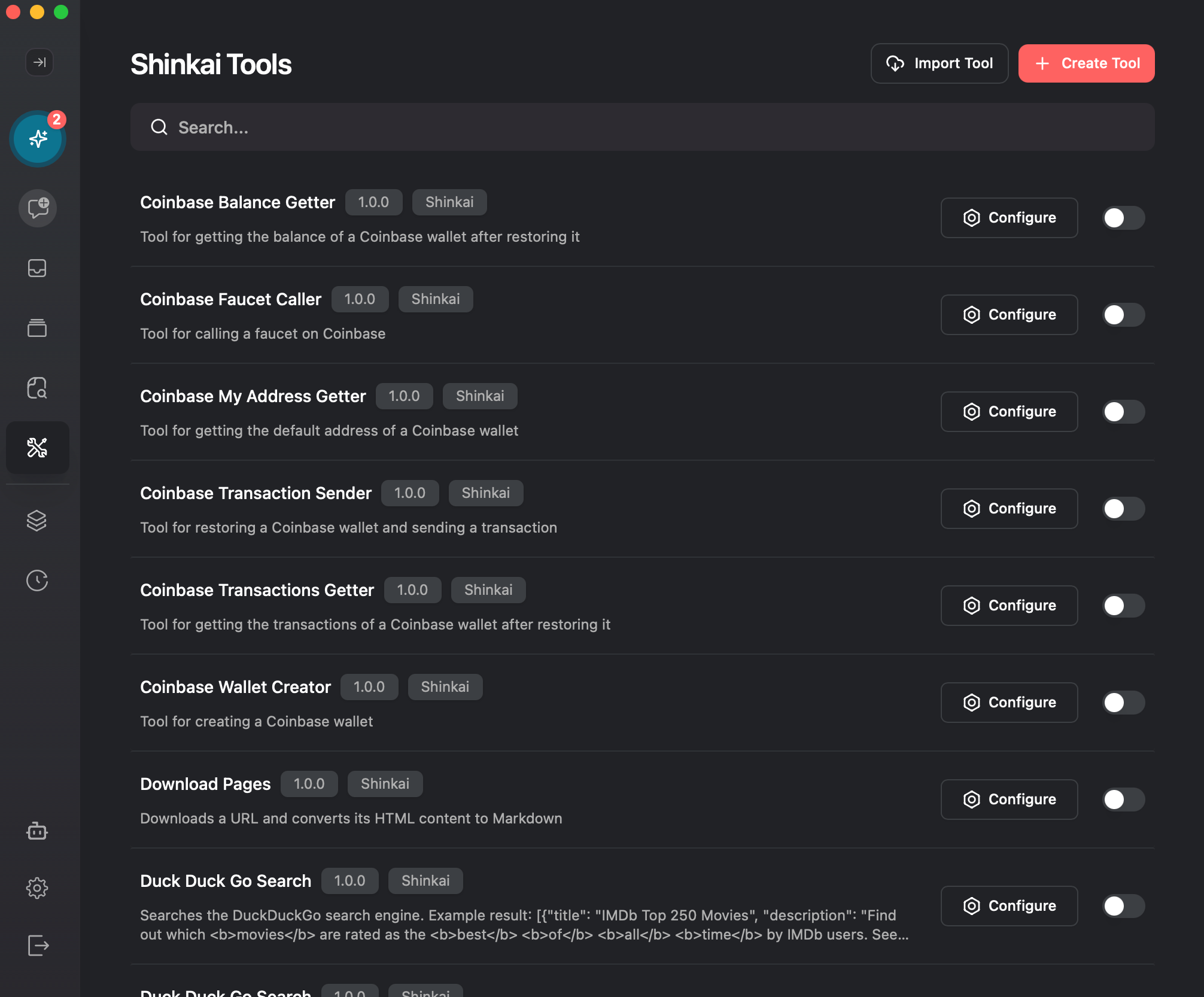 Once activated, a 🛠️ Shinkai Tools button will appear in the left menu. Click it to enter the Tools section and start exploring.