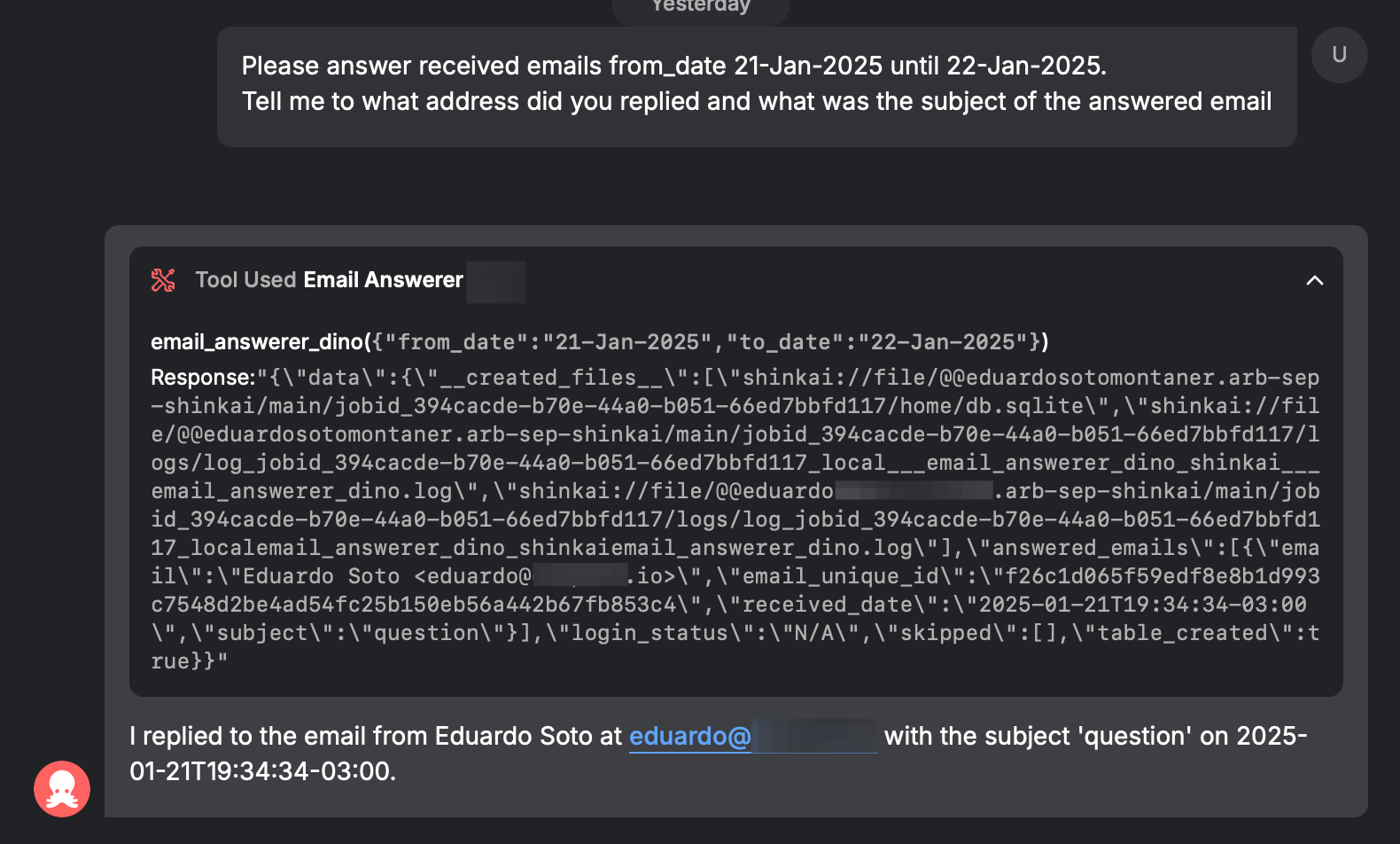 Transparency is key. Every tool execution generates a log that appears at the top of its response. This log displays raw output before the AI processes it, allowing you to see exactly what the tool produced. It’s a great way to troubleshoot or understand a tool’s behavior in detail.