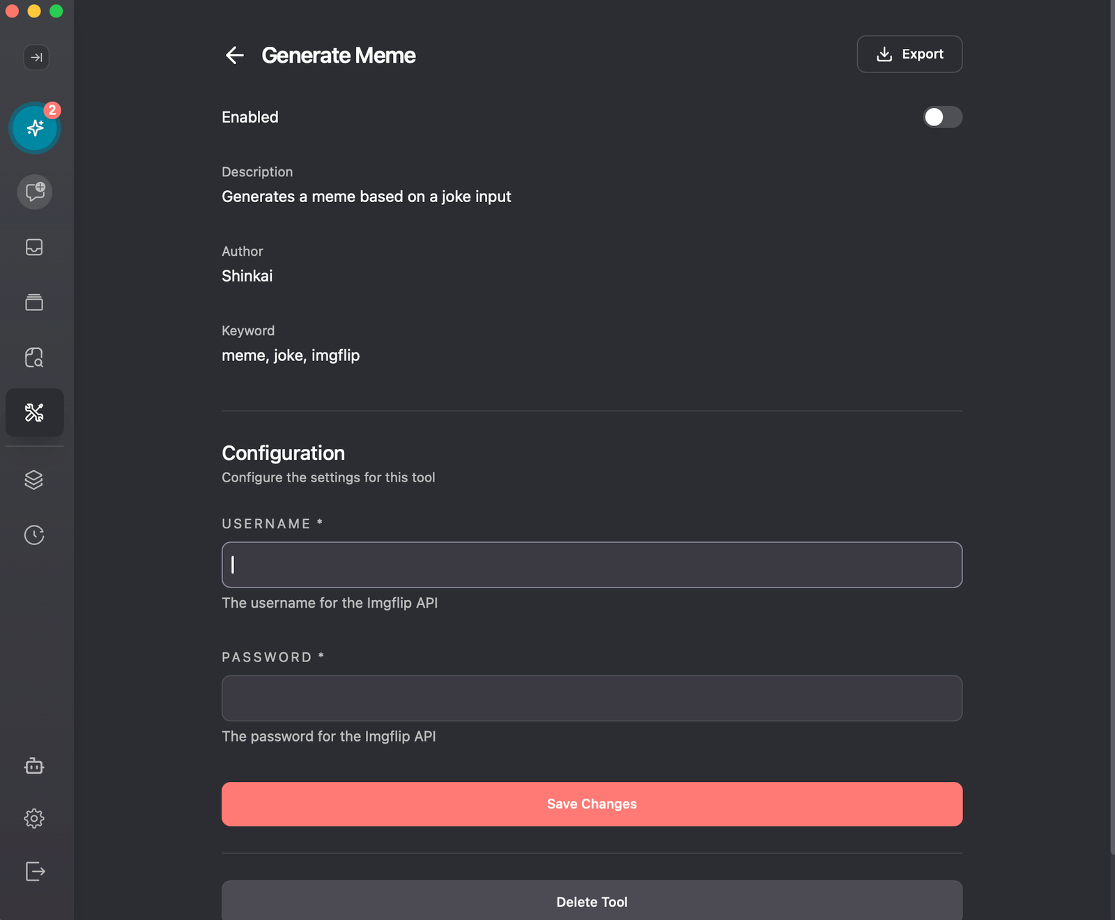 - Export Tools: Save the tool as a ZIP file to share with other Shinkai users.